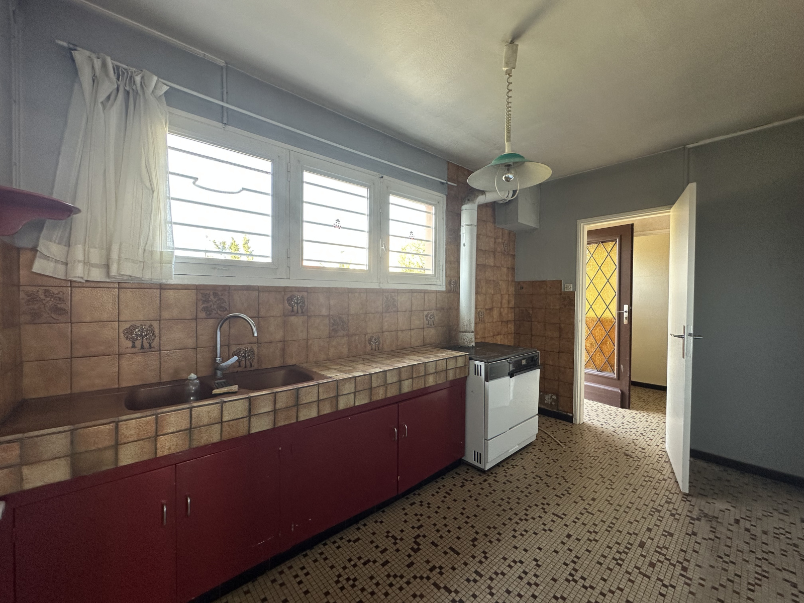 Elle se compose de 3 chambres, d'un point d'eau, d'un toilette indépendant, d'un cellier, d'un salon séjour, d'une cuisine et d'un garage de 27m² pouvant être réhabiliter en habitation avec une belle hauteur sous plafond. Le terrain est piscinable et une extension est possible.
