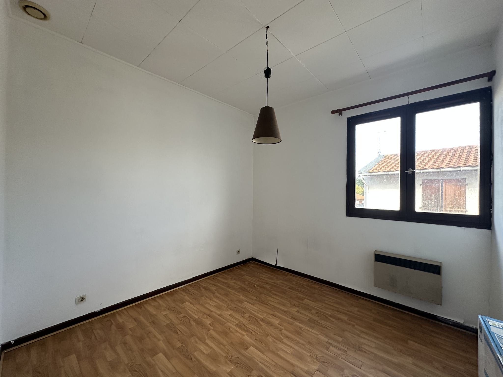 L'étage se compose de deux chambres, et d'une salle d'eau. Un cellier extérieur et une place de parking aérienne complètent l'ensemble. Petite copropriété.