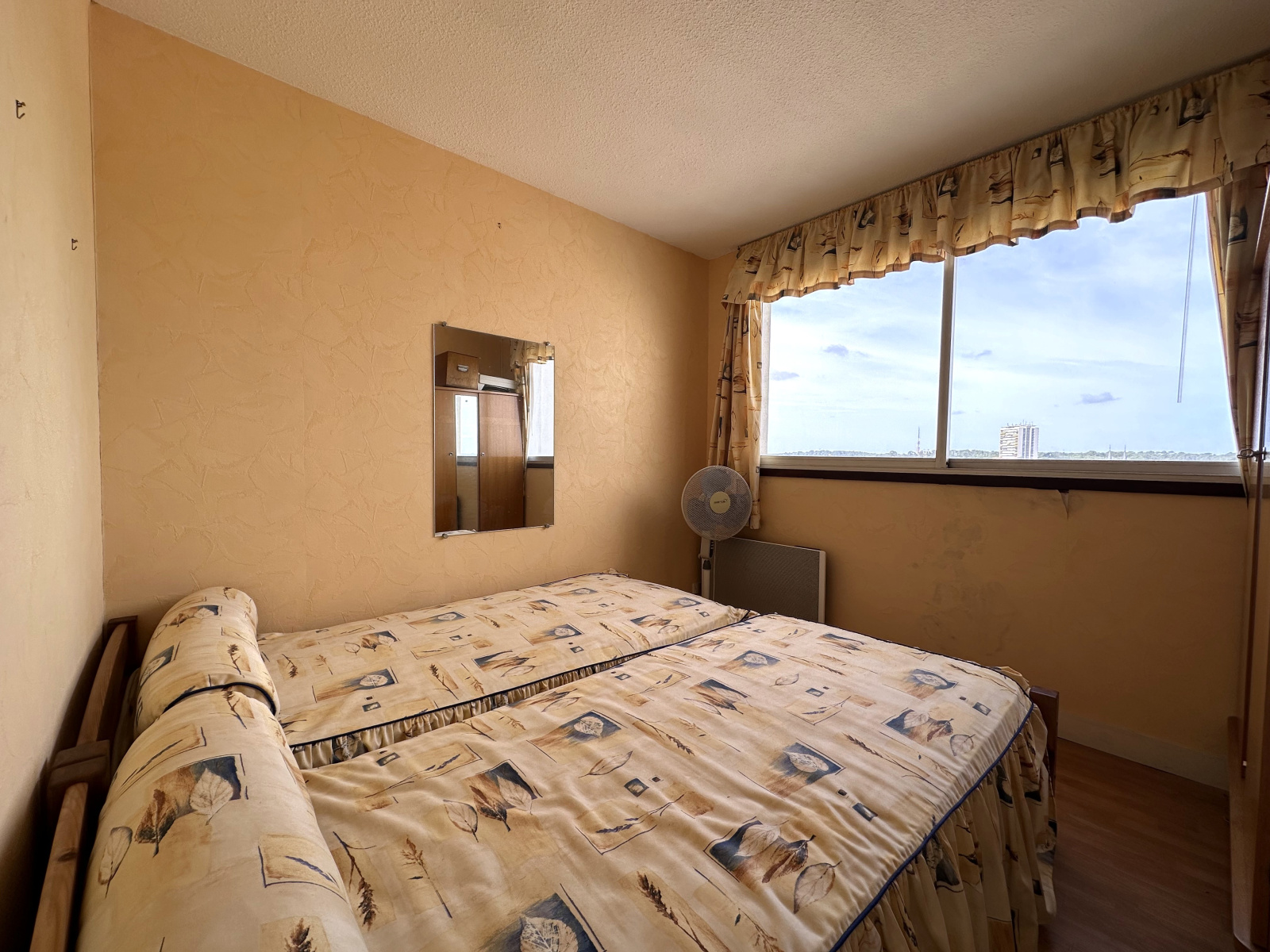 Il se compose d'une entrée, un séjour avec cuisine ouverte, deux chambres, une salle d'eau, un WC et un balcon. Un garage fermé complète l'ensemble.