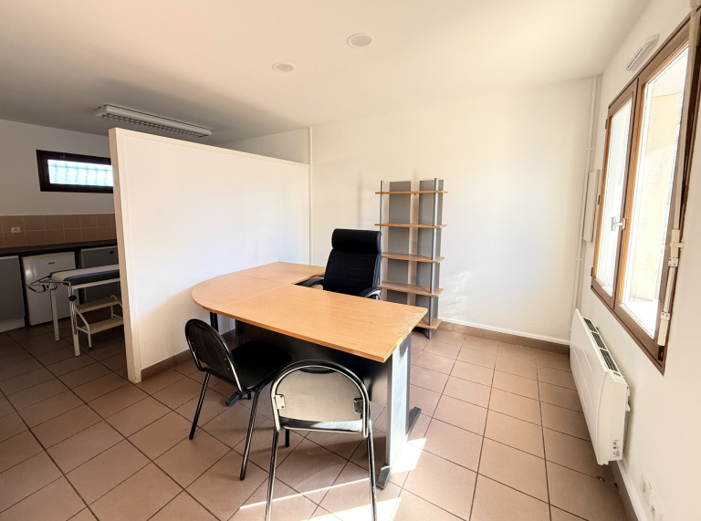 - un cabinet avec bureau et espace consultations, points d'eau, sortie individuelle