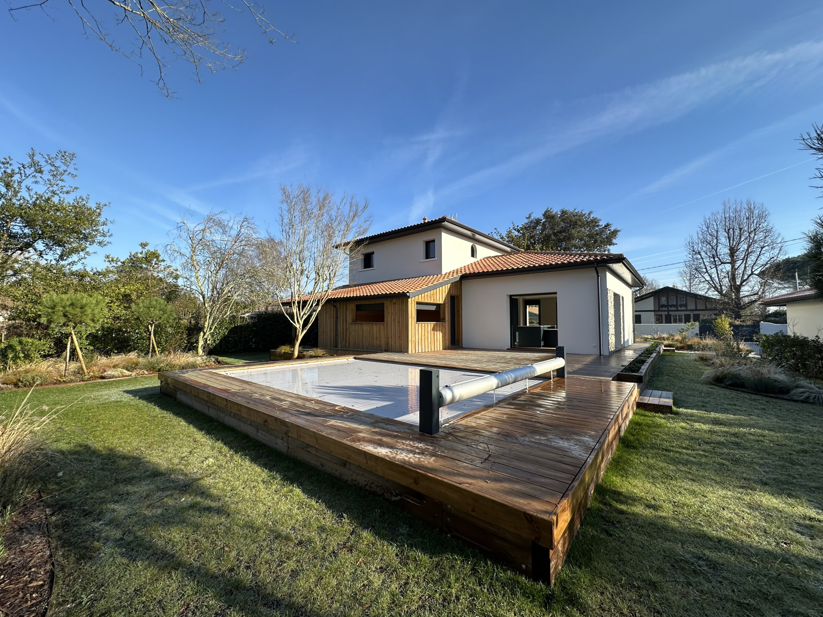 Le jardin est entièrement paysagé. Une piscine et un terrain de pétanque viendront parfaire vos journées d'été. Un garage complète l'ensemble.