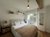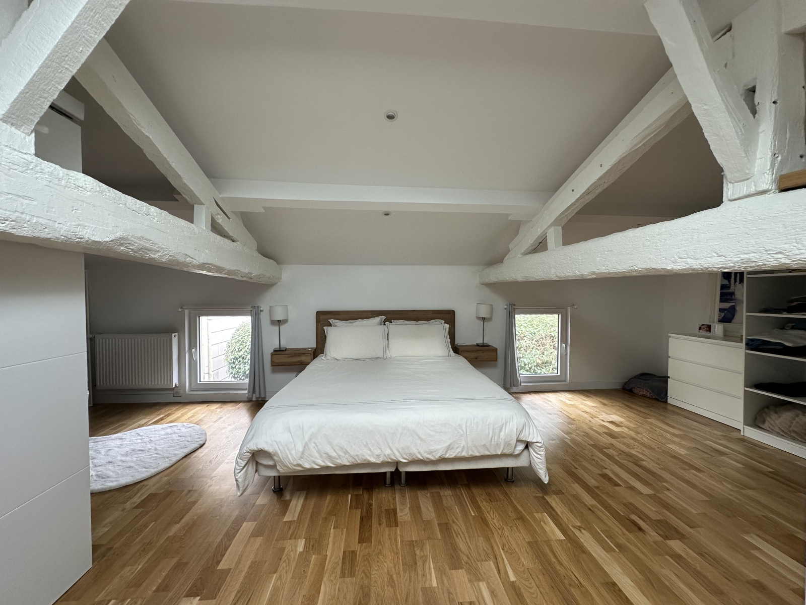 Deux des trois chambres du bas sont composées d'un placard aménagé toujours ornées de ces belles pierres de « lest » typiques de notre architecture locale et de poutres apparentes.