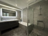 La salle de bain comprend une douche et un meuble double vasque. Une grande buanderie / cellier d'environ 17m² et un w.c. complètent ce premier niveau.