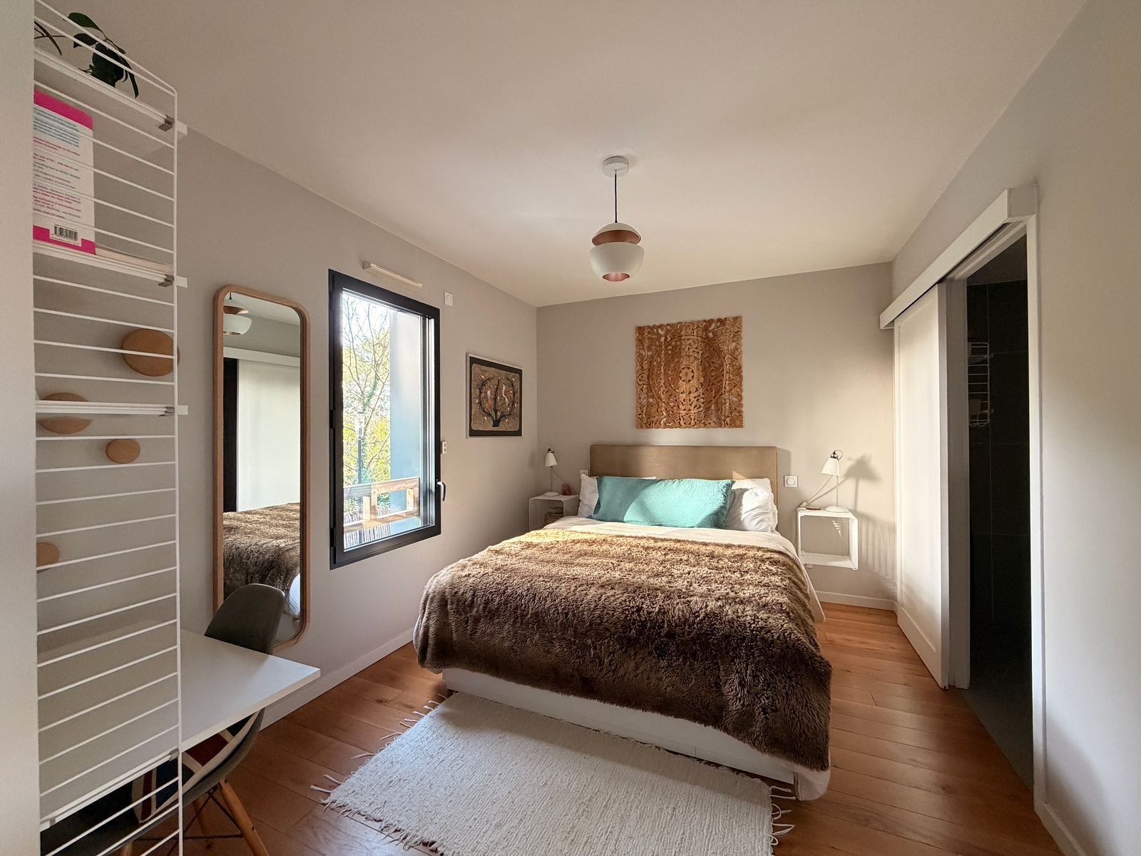 - au 1er étage : un espace de vie lumineux et confortable avec cuisine ouverte équipée, et séjour traversant. De part et d'autre des baies vitrées, un paysage verdoyant et ressourçant vous coupera du monde extérieur, une terrasse en hauteur pour profiter de la vue. Une chambre parentale avec dressing, salle d'eau et WC.